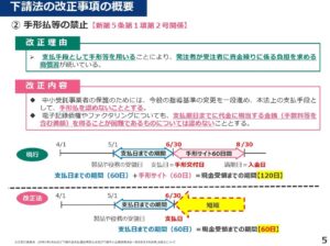 ②下請代金の支払遅延の禁止→改正で手形払等は禁止に