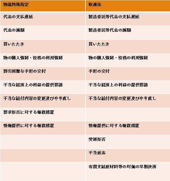 【特定運送委託(取適法)と物流特殊指定との相違】